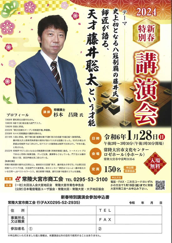 2024 年の新春特別講演会は、将棋棋士 “杉本 昌隆” 氏を講師に迎えて開催しました。今年度も内容が決まり次第ご案内致します。